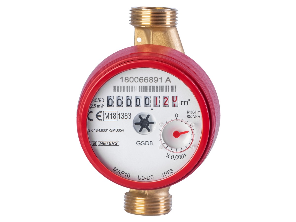 DN15 GSD8-I meleg 1/2″ 110mm 2,5m3/h BMeters vízóra, ETW szárazon futó 3/4″ külső menetes lakásmérő